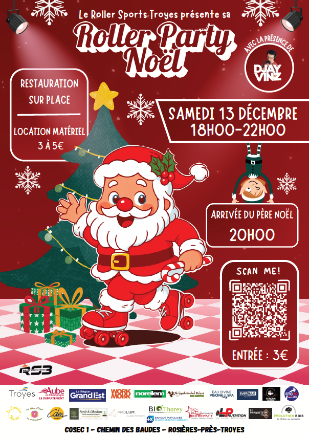 Roller Sports Troyes organise une roller party sur le thème de Noël samedi 13 décembre de 18h à 22h au COSEC 1. Entrée payante 3 euros